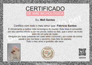 Certificado Mãe Bichológica Celebre o dia em que o amor entrou na sua casa.