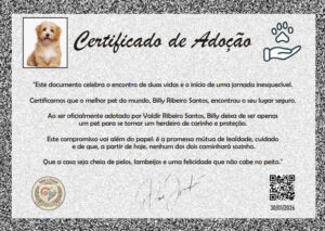 Certificado de Adoção Celebre o dia em que o amor entrou na sua casa.