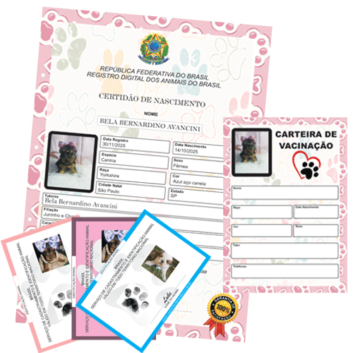Os documentos serão enviados por WhatsApp e download automático assim que preenchido os dados seu pet através do painel acessando aqui sua conta